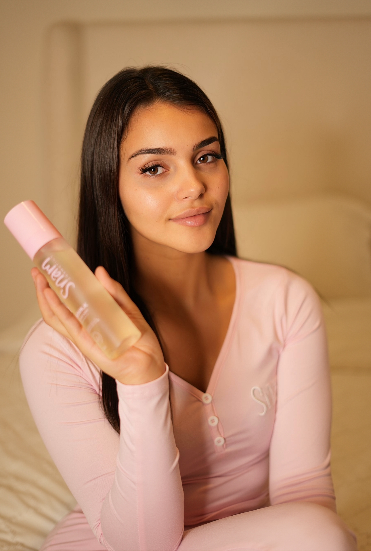 - Vaporisez généreusement sur la peau pour une hydratation douce et un parfum subtil.